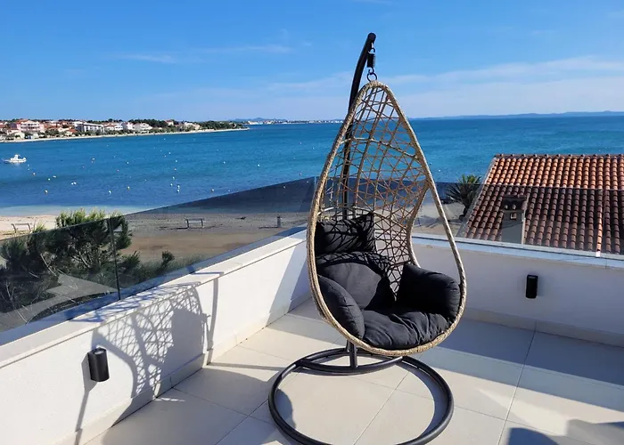 Pour profiter de vos vacances à Vir, séjournez à Vircation Apartments de 104 m^2, qui se trouve à moins de 10 minutes en voiture de Plaza Jadro et à 25 minutes de marche de Plaza Radovanjica. L'appartement dispose d'une terrasse qui s'ouvre sur la mer.
